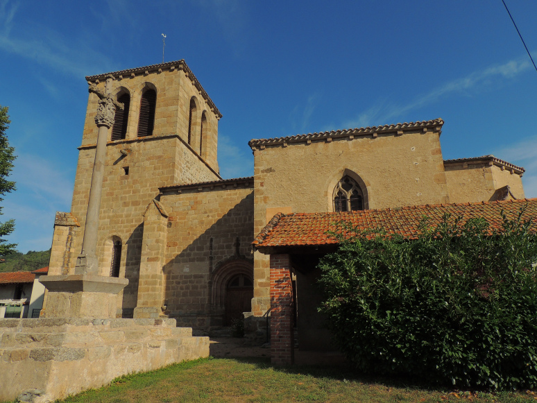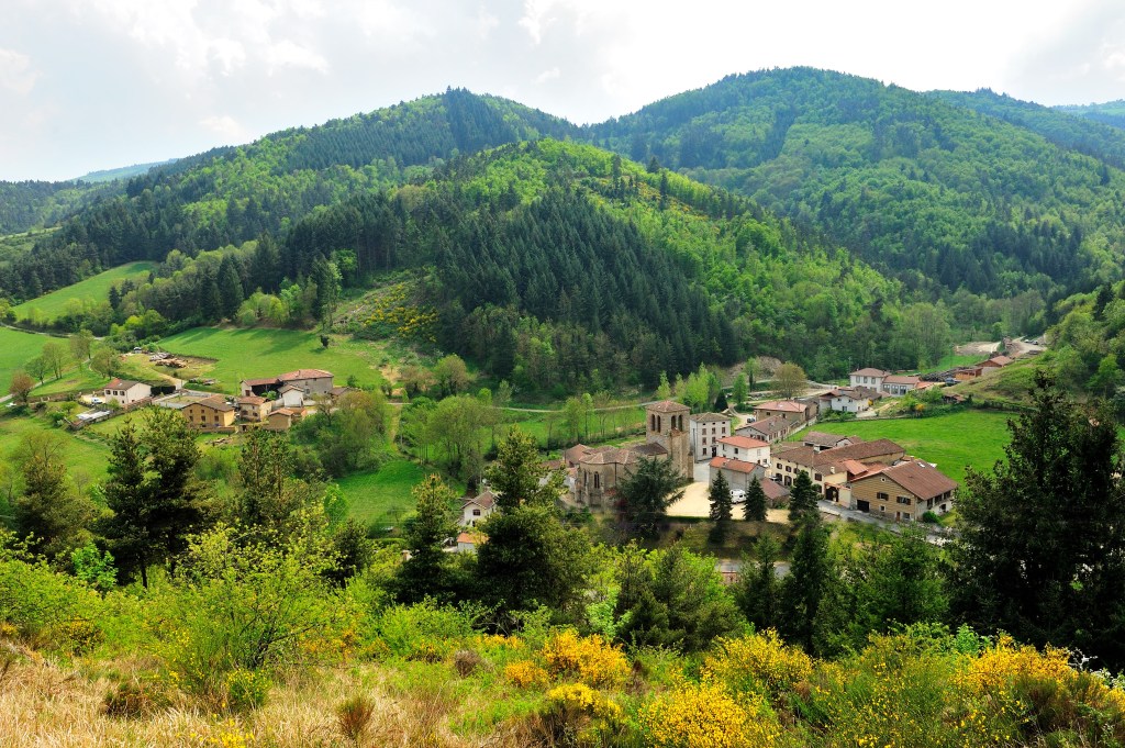Le bourg de la commune est installé à l’intersection de deux rivières. En son cœur, sur une petite bute, se dresse une église de style gothique forézien datée de 1470 ; sa construction a duré 26 ans. Juste à côté, une croix de cimetière du début du XVIᵉ siècle marque l’emplacement de l’ancien cimetière. Cette croix sculptée accueille sur son fût une représentation de saint Laurent. L’église et la croix sont inscrites monuments historiques. Au bas de la bute de l’église, de l’autre côté de la rivière, les maisons ont été l’habitation du curé de la paroisse.